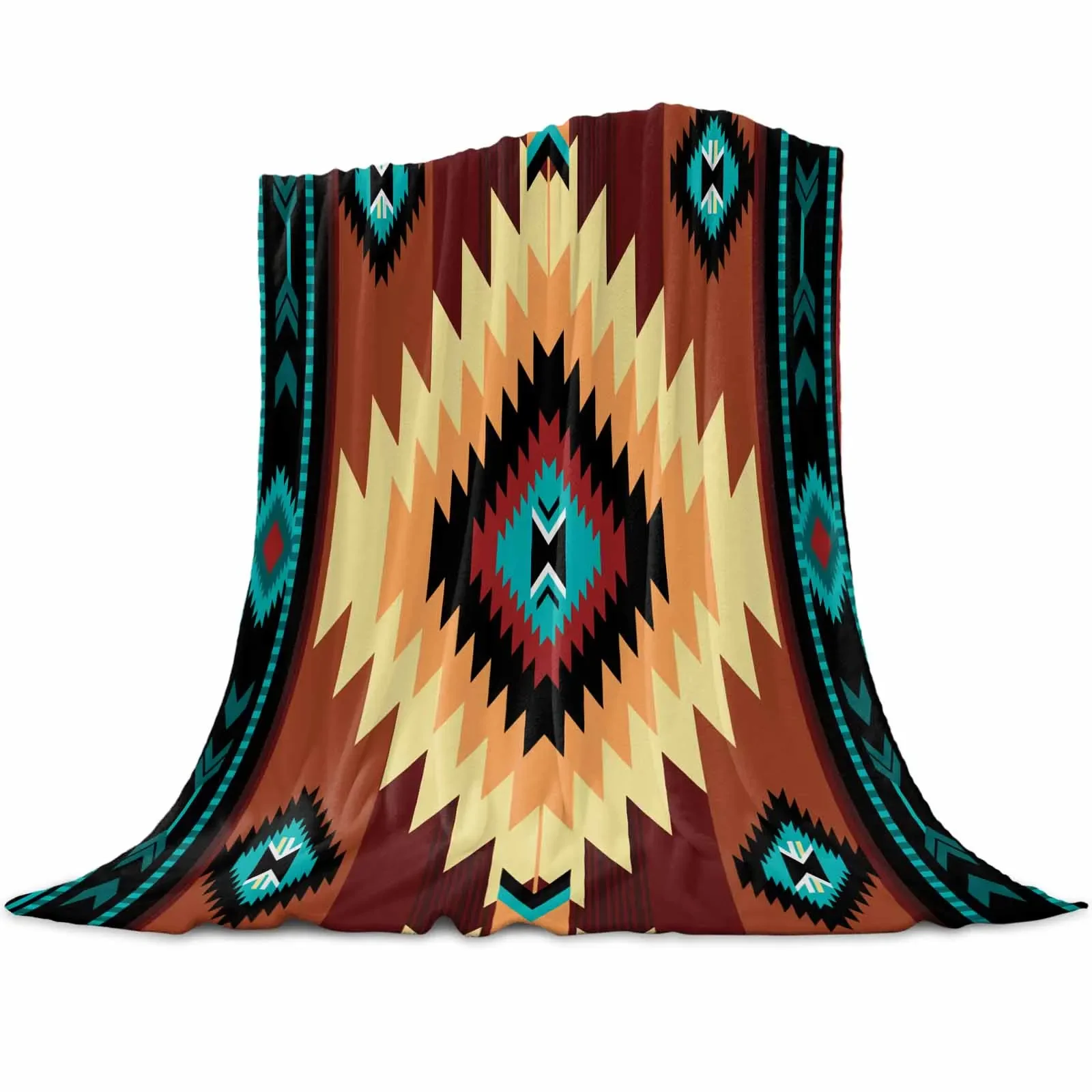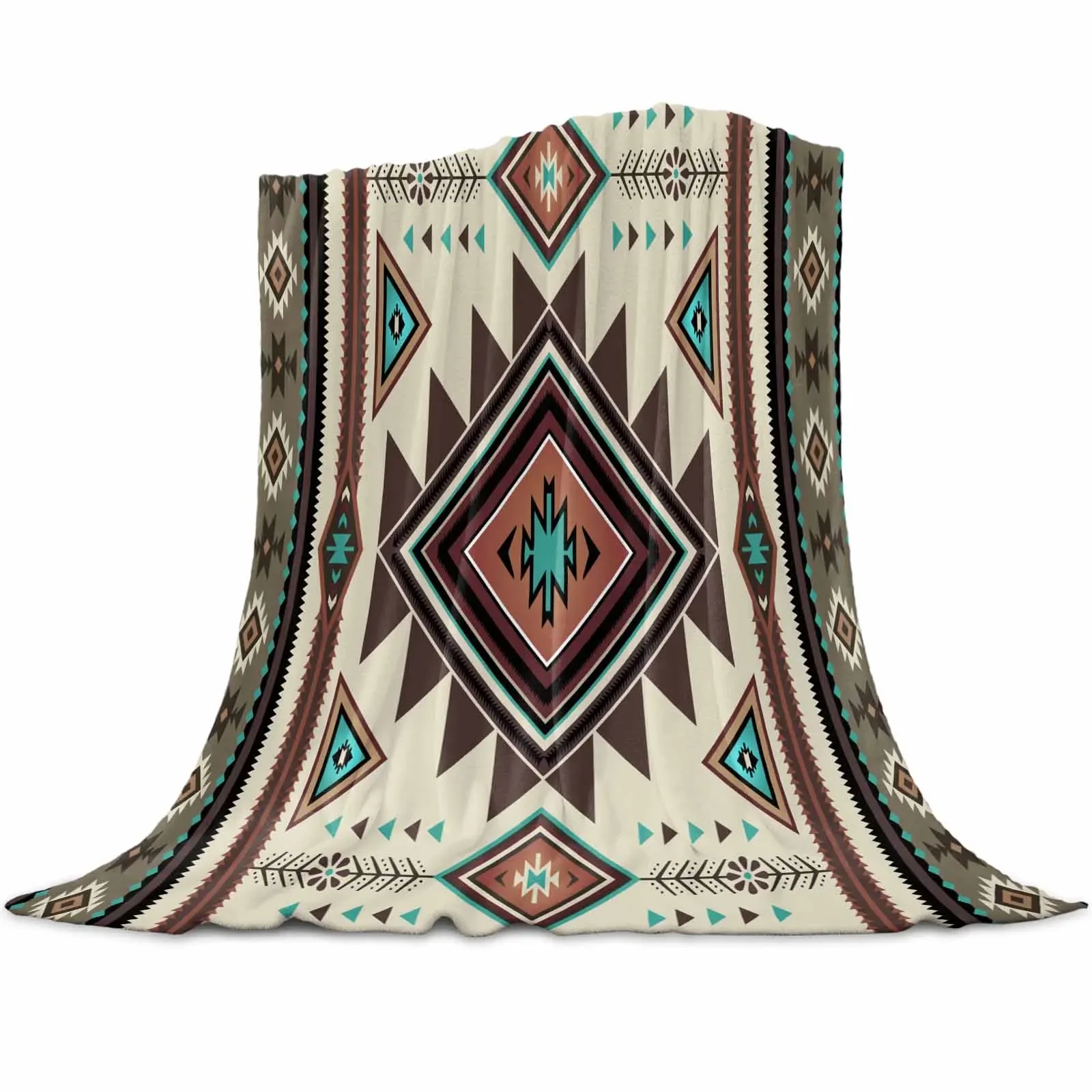 Indian Geometry Throw Blanket – Soft Plush Sofa & Bed Blanket for Winter Warmth