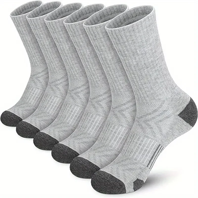 6 Pairs Men’s Solid Crew Socks — Comfortable, Breathable, and Thermal for Winter & Autumn