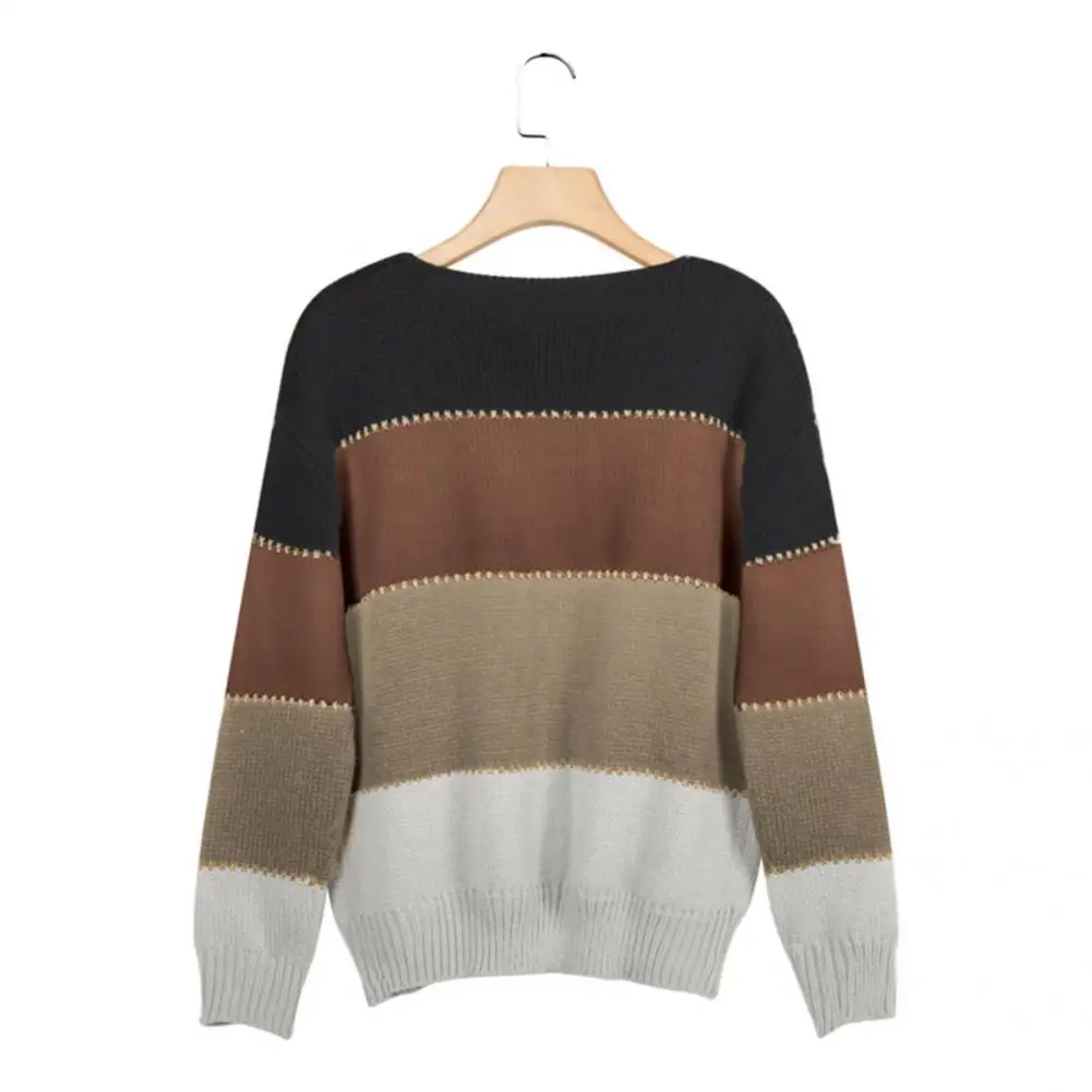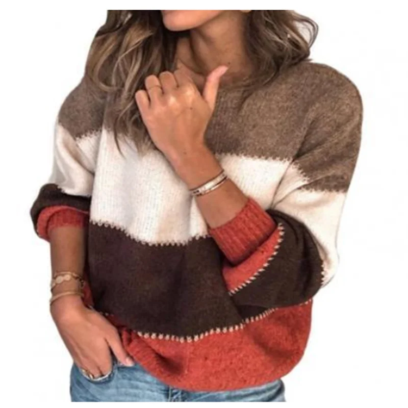 Stay cozy and stylish this season with this Women’s Striped Knit Sweater, designed for autumn and winter casual wear. Featuring a classic O-neck, long sleeves, and loose fit, it provides comfort and effortless layering. The striped patchwork design adds a modern, fashionable touch, making it perfect for pairing with jeans, skirts, or leggings. Soft and breathable, this sweater combines warmth, style, and versatility for everyday outfits or casual outings.