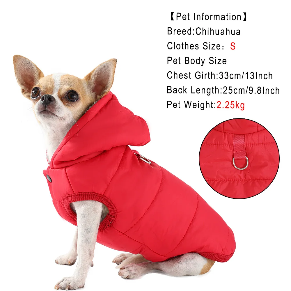 | Hooded Dog Clothes With D-ring | Winter Warm Dog Coat |